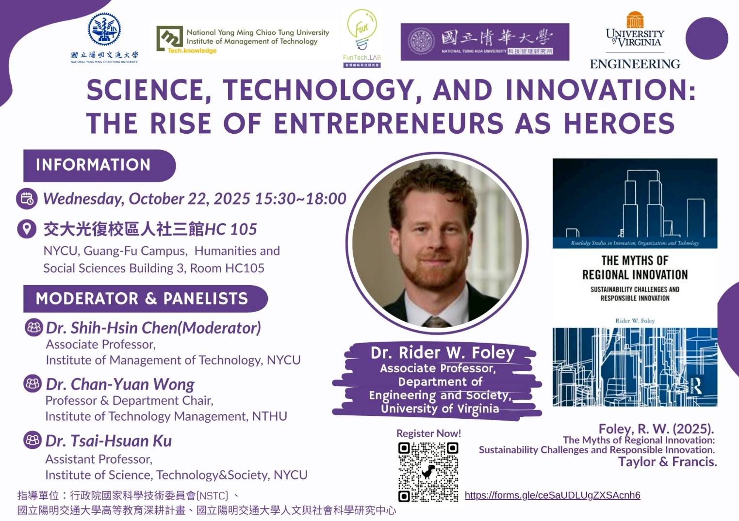 【負責任創新國際講座】美國維吉尼亞大學 Rider Foley 副教授訪臺系列演講